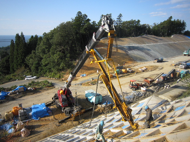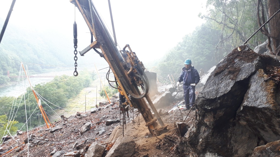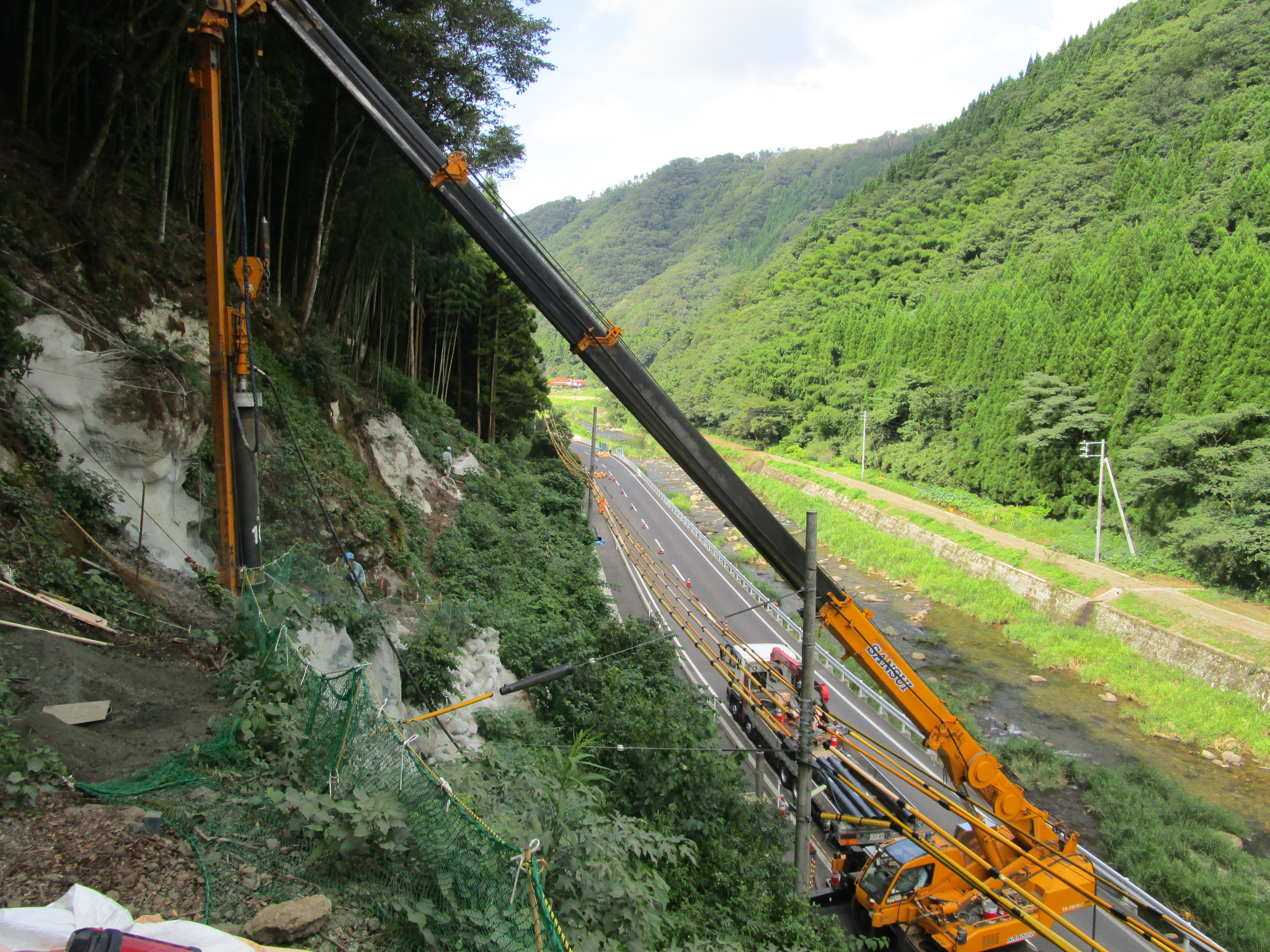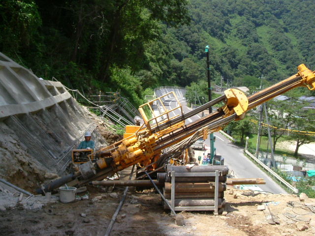 鋼材の引張力により移動土塊を安定させることにより地すべり滑動力に対抗しようとする工法です。