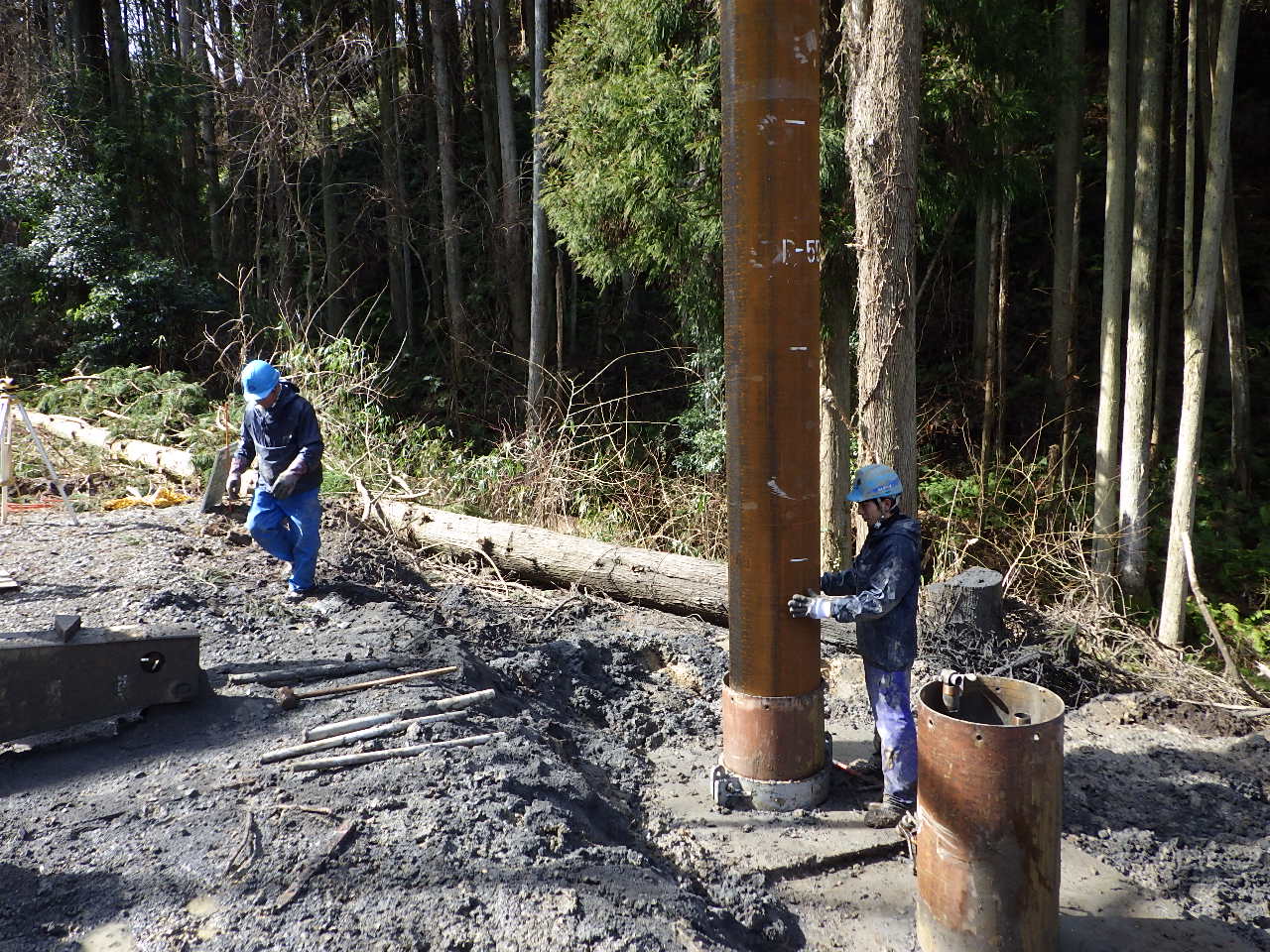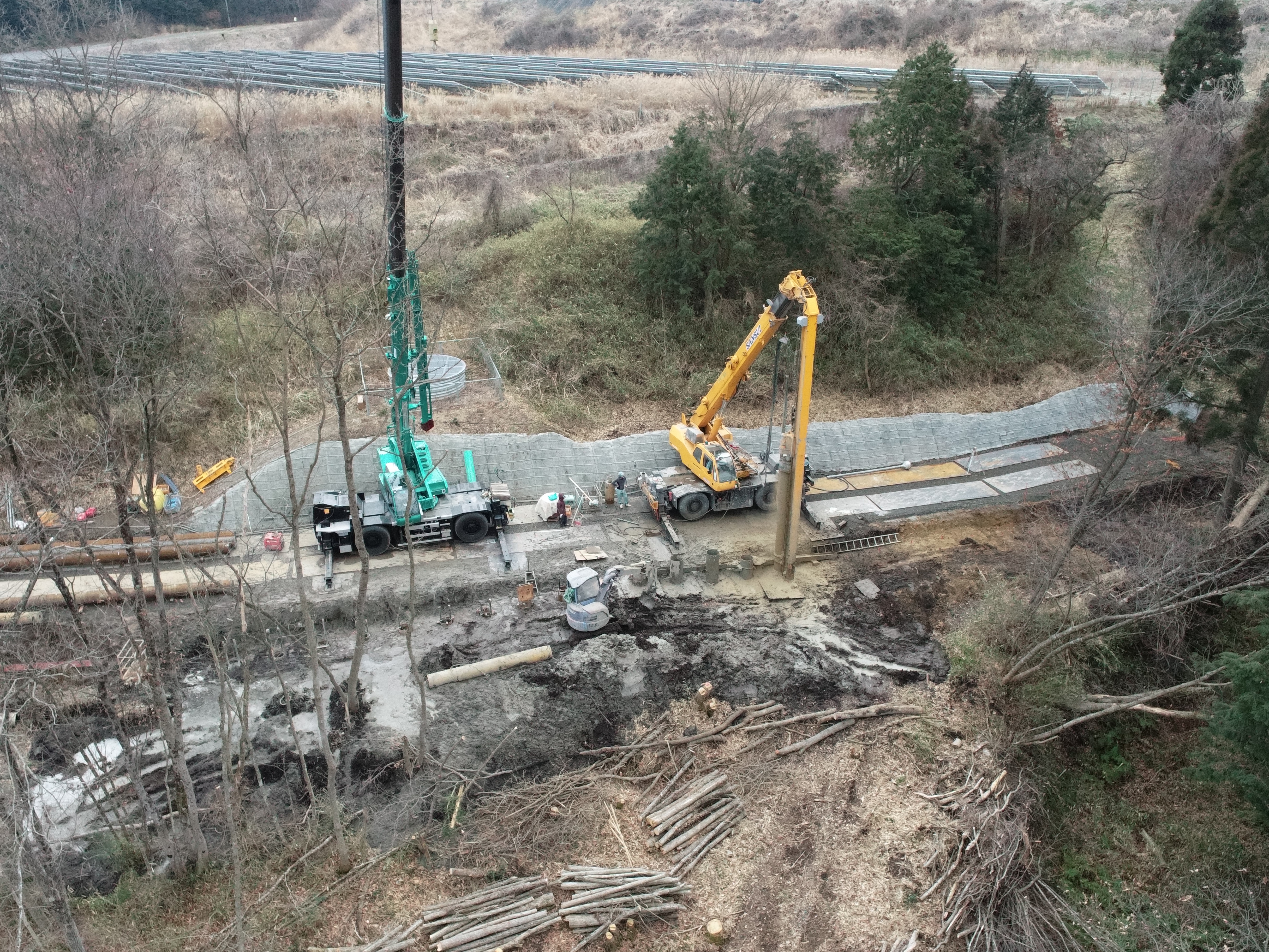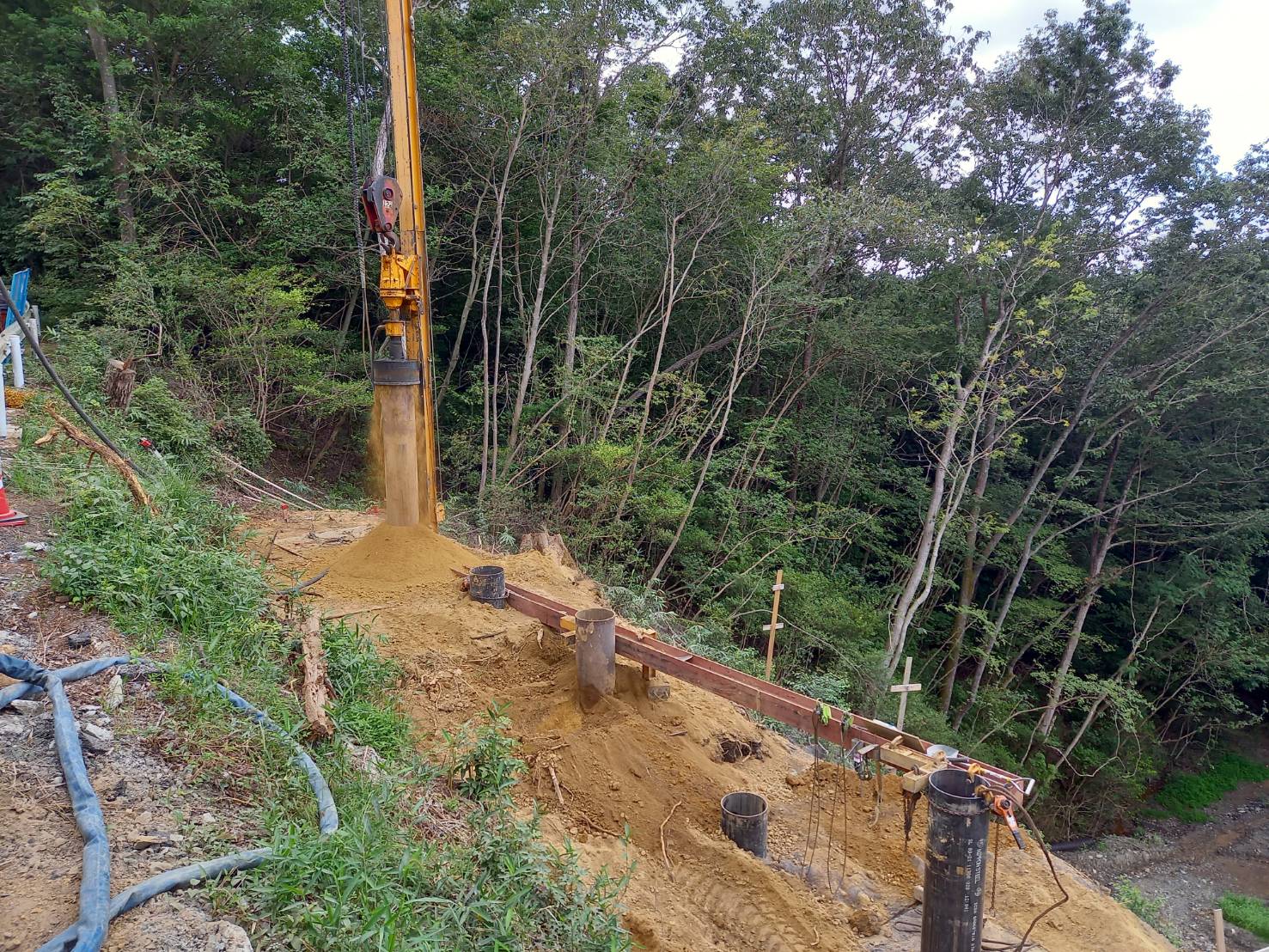 支柱を建込む基礎孔は、鋼管を直接打設することで崩壊する土質(自立しない孔壁)でも安定した工程、品質、精度での施工が可能です。