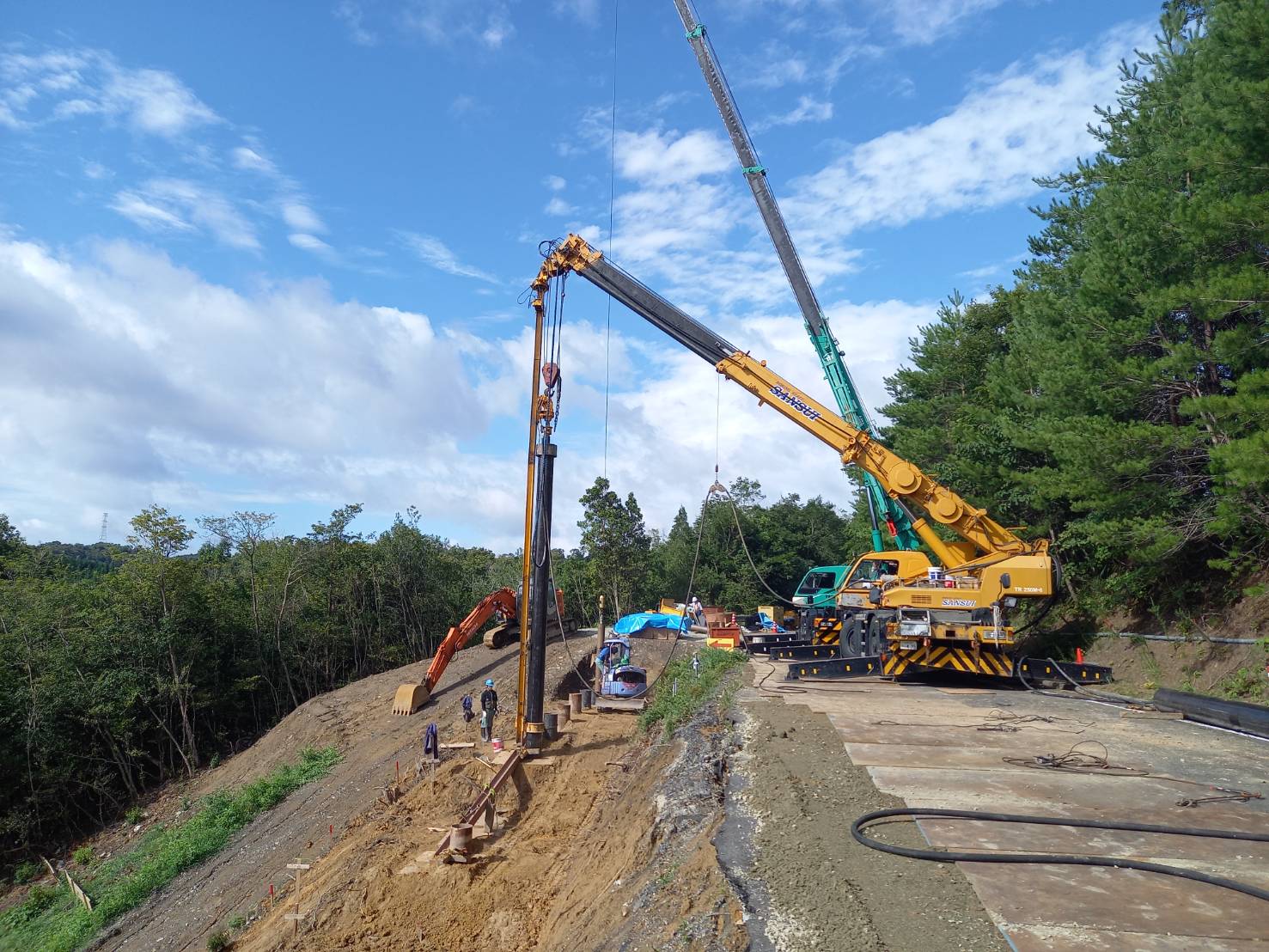 抑止杭は、直接地すべりに働きかけ抑止する地すべり抑止工です。